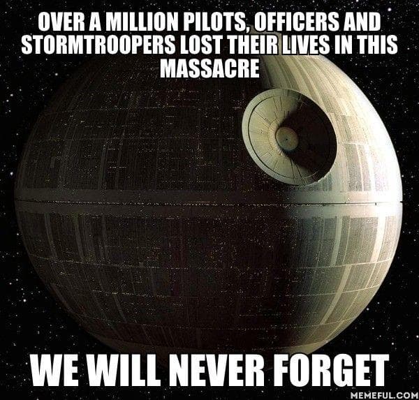 A názor, že zničení Alderaanu byla "prasárna", pramení z nepochopení. Postavení stanice Hvězda Smrti mělo mít odstrašující účinek, aby rebelové polevili ve své aktivitě. Jenže problém s tou stanicí byl, že rebelové ji nechápali a vůbec se ji nebáli. Samotné postavení nestačí. Proto Grand Moff Tarkin informoval císaře, že je potřeba provést odstrašující útok, aby rebelové konečně pochopili, a císař mu to schválil.